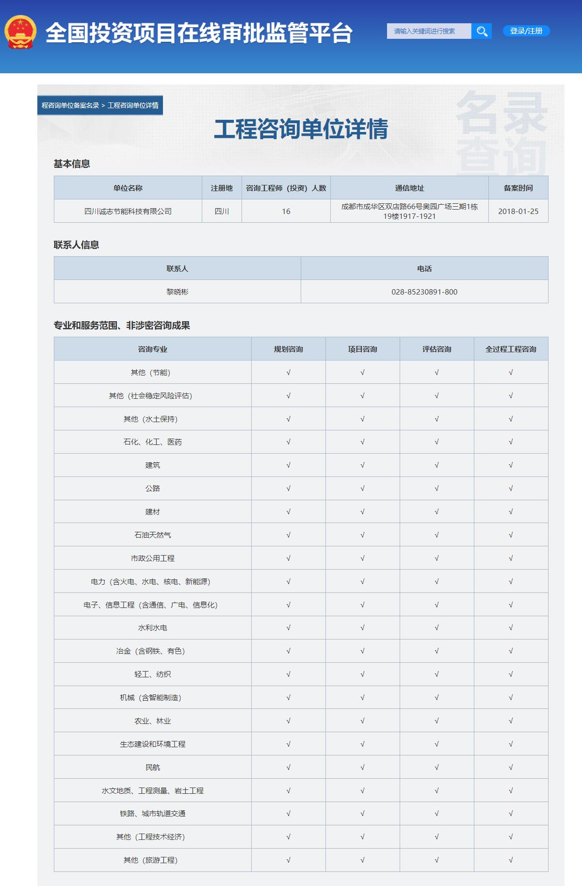 四川誠志節能科技有限公司(以下簡稱我公司)成立于2011年2月,是由多年從事技術咨詢服務行業的自然人發起,依托其近20年的咨詢行業經驗及其市場和人力資源優勢,組建成立的具備獨立法人資格的技術咨詢服務公司。我公司為四川省省級能源審計機構資格(2012年第一批,2016年四川省經信委推薦能源審計機構【川經信辦環資〔2016〕10號】),并取得含有節能專業的工程咨詢單位咨信資質,為四川省工程咨詢協會會員單位,中國水土保持學會會員單位,為高新技術企業。我公司通過了質量管理體系(ISO9001)、環境管...